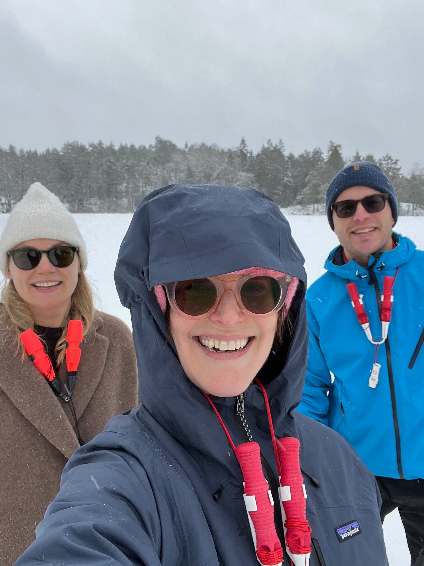 This is for the serious ice walkers and skaters. North of the wall business. Several times a week I walk in the nature reserve by our house that runs past both a lake and the Baltic sea. I often see walkers and skaters and hockey players on the water when it freezes over. One day, during my second winter, I decided to venture out on the ice. I didn’t know the safety rules to consider, it just seemed like a good idea at the time. When I decided to stray off my normal path, and actually walk out onto the ice, my first instinct was to stick close to the edge of the lake. I guess I thought if the ice started to crack I could more easily get back to solid ground. It was also just a really weird feeling to simply step off of land and onto the ice that was normally water. After a while I got more comfortable and decided to strike out to the middle of the lake. I immediately had the dizzying feeling you get when you first set out on a boat in a familiar body of water you have looked at so long from land. Your perspective literally changes 180 degrees and it’s like seeing everything you know deeply for the first time. Except now instead of on a boat, I was standing on top of the water in the middle of a giant frozen lake. It was weird. It made me giddy. I was literally laughing out loud out of nervousness and just the novelty of the feeling and the situation. Later as I was breathlessly retelling my experience, I was severely scolded by my sister-in-law and her very ice-educated husband. It turns out you are never supposed to go out on the ice alone. And the edges of the ice are where the ice is the thinnest and weakest. Same goes for any part of the water that is under an overhanging tree. So you actually cannot be timid or stick to the sides, you have to go for it and get out on the thicker more stable ice. Of course you are also supposed to use a gauge to check the thickness of the ice before you go out, and you are also supposed to wear emergency spikes around your neck in case you fall in you can haul yourself out. All good to know. As part of the Swedish middle school curriculum, kids get classes in how to walk on ice, and more importantly how to get out of the ice if you fall in. In the classes they purposefully fall in the water through a hole in the ice with their normal clothes and shoes and backpack on, and have to haul themselves out. As someone that spent middle school in east Texas and Louisiana, I only ever had the chance to occasionally ice skate at the Galleria mall when I visited my grandmother in Dallas. It feels very surreal to now live somewhere that is buried in ice and snow a better part of the year. I still get excited every time it snows, and still get the urge to bake, drink hot chocolate and go play outside. I encourage you to do the same. Just don’t fall down and break a bone. Stay safe and warm!